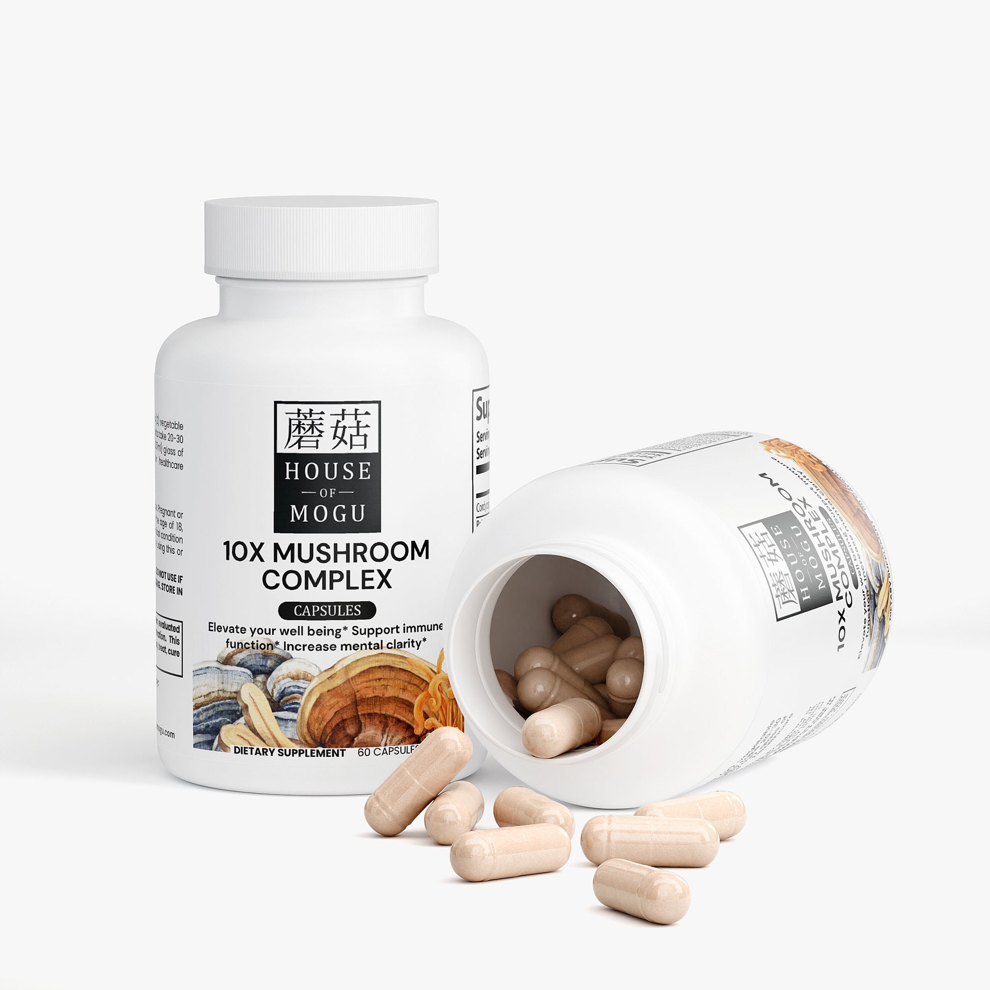 Unlock the potential of nature with our 10X Mushroom Complex Capsules, carefully crafted to bring you the holistic benefits of these revered mushrooms. Elevate your wellness journey with the time-tested wisdom of Traditional Chinese Medicine and the extraordinary power of mushrooms. Embrace a healthier, more vibrant you!